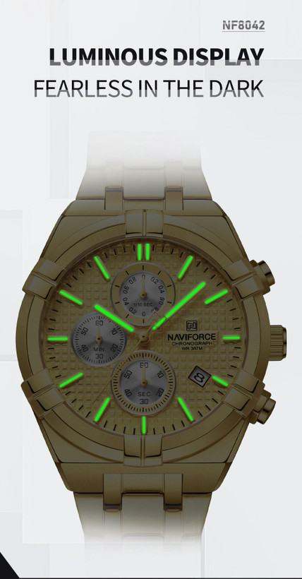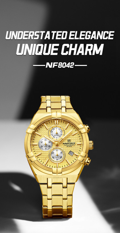 نیوی فورس (Navifroce) بر روی تولید ساعتهای پر از ویژگی با قیمتهای رقابتی تمرکز دارد. مجموعههای آنها طیف وسیعی از سبکها را شامل میشود، از طرحهای کلاسیک عقربهای تا کرنوگرافهای چند منظوره و ترکیبات دیجیتالی-عقربهای. بسیاری از ساعتهای آنها عناصر را که به طور معمول در ساعتهای رده بالا دیده میشوند، مانند ساختار فولاد ضد زنگ، بندهای چرمی و زیر صفحههای کرنوگراف، ترکیب میکنند. با این حال، ناوی فورس محصولات خود را مقرون به صرفه نگه میدارد، و آنها را برای مصرف کنندگان با بودجه محدود جذاب میکند.