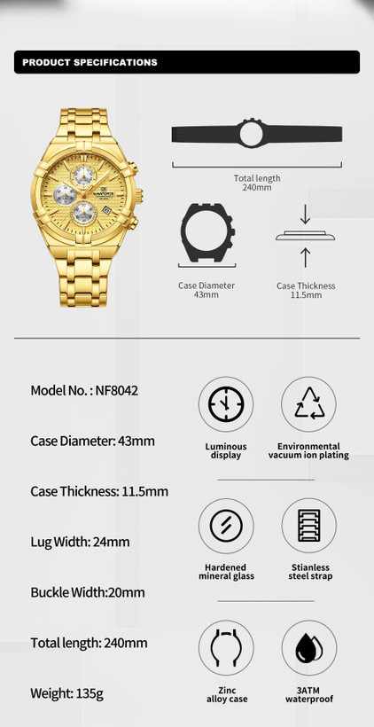 ساعتهای نیوی فورس اغلب شامل ویژگیهایی مانند ضد آب بودن، پیچیدگیهای تاریخ و عملکردهای کرنوگراف هستند. در حالی که این ساعتها برای ورزشکاران حرفهای طراحی نشدهاند، اما برای مردانی با سبک زندگی فعال که قدردان ساعتی هستند که میتواند با روال روزانه آنها همراه باشد، جذاب هستند.