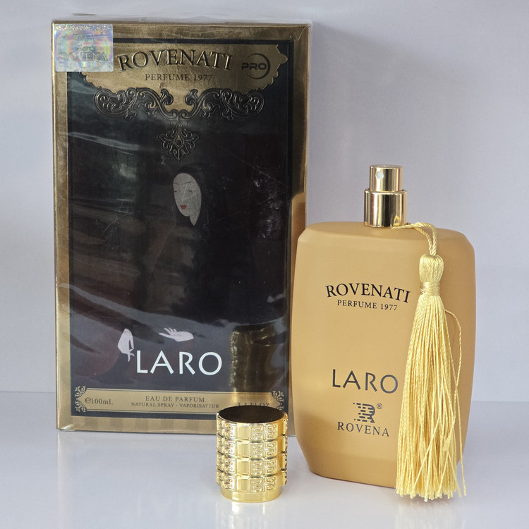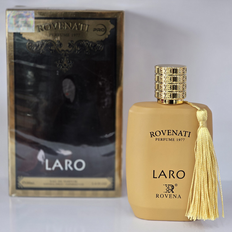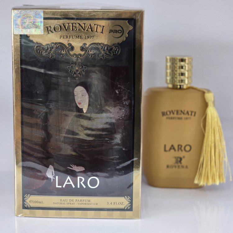 ادکلن زنانه روونا مدل رووناتی لارو مشابه رایحه کازوماراتی لیرا می باشد. عطر ادکلن لارا عطری است گرم و شیرین. با توجه به رایحه ی گرم و شیرین این محصول از آن میتوان در چهار فصل سال و در درازای شبانه روز استفاده ی مدام داشت. این عطر زنانه عطری که در ابتدا با شیرینی دلچسب و خوشمزه ی وانیل کار خود را آغاز کرده و با شدت به سمت ملایمت رایحه ی گلها رفته و کم کم ماندگاری بیشتری به خود می گیرد.