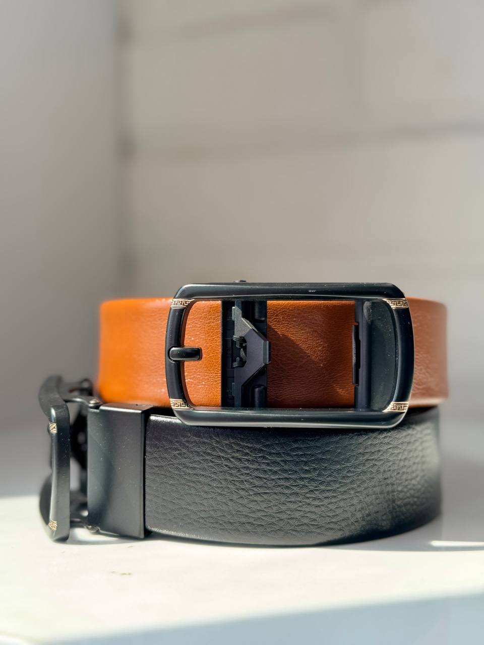 تسمه کمربند از چرم مصنوعی با کیفیت ساخته شده که علاوه بر دوام بالا ظاهری شیک و رسمی و به استایل شما میبخشد.