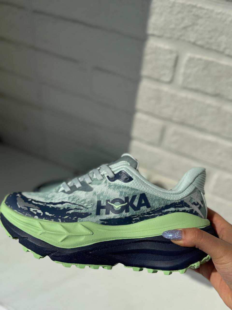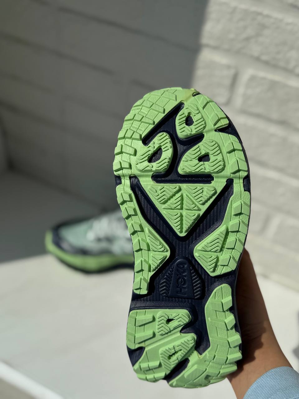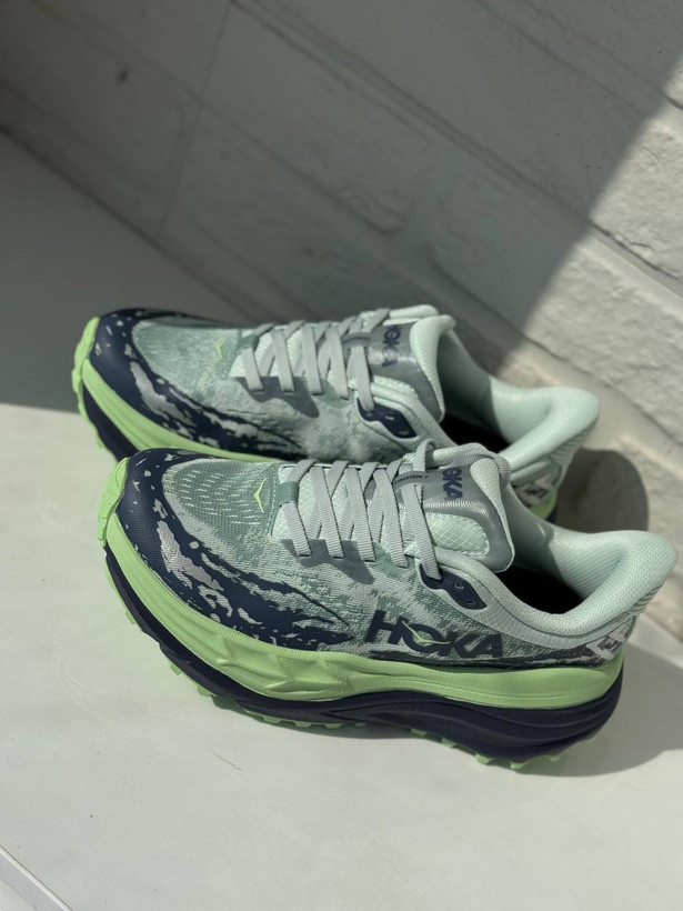 کفش هوکا استینسون رنگ نعنایی آبی تیره با زیره لیمویی روشن