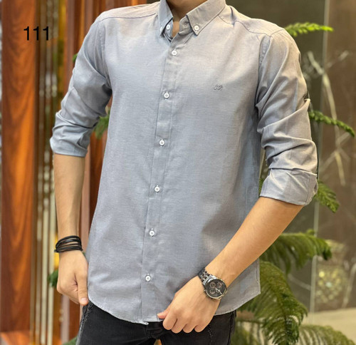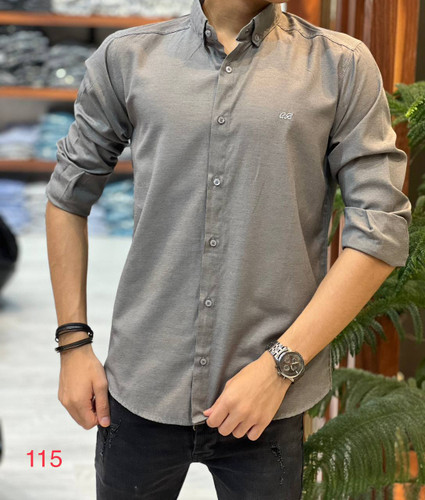 پیراهن مردانه آستین بلند طوسی خیلی روشن