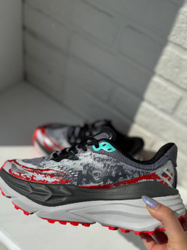 کفش هوکا استینسون رنگ طوسی مشکی با جزئیات قرمز